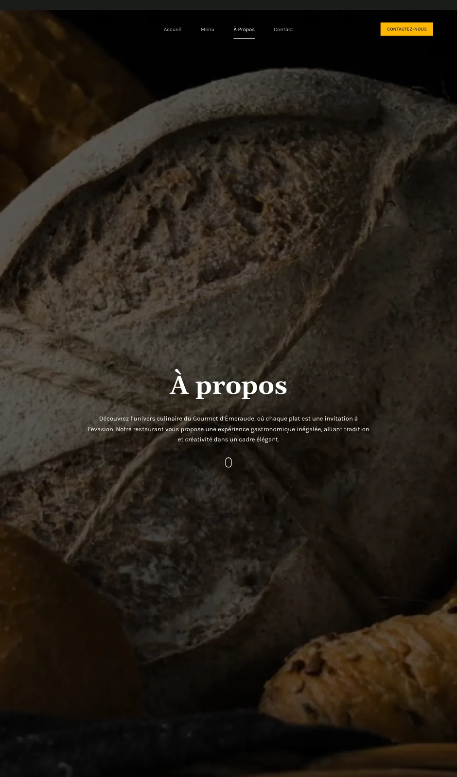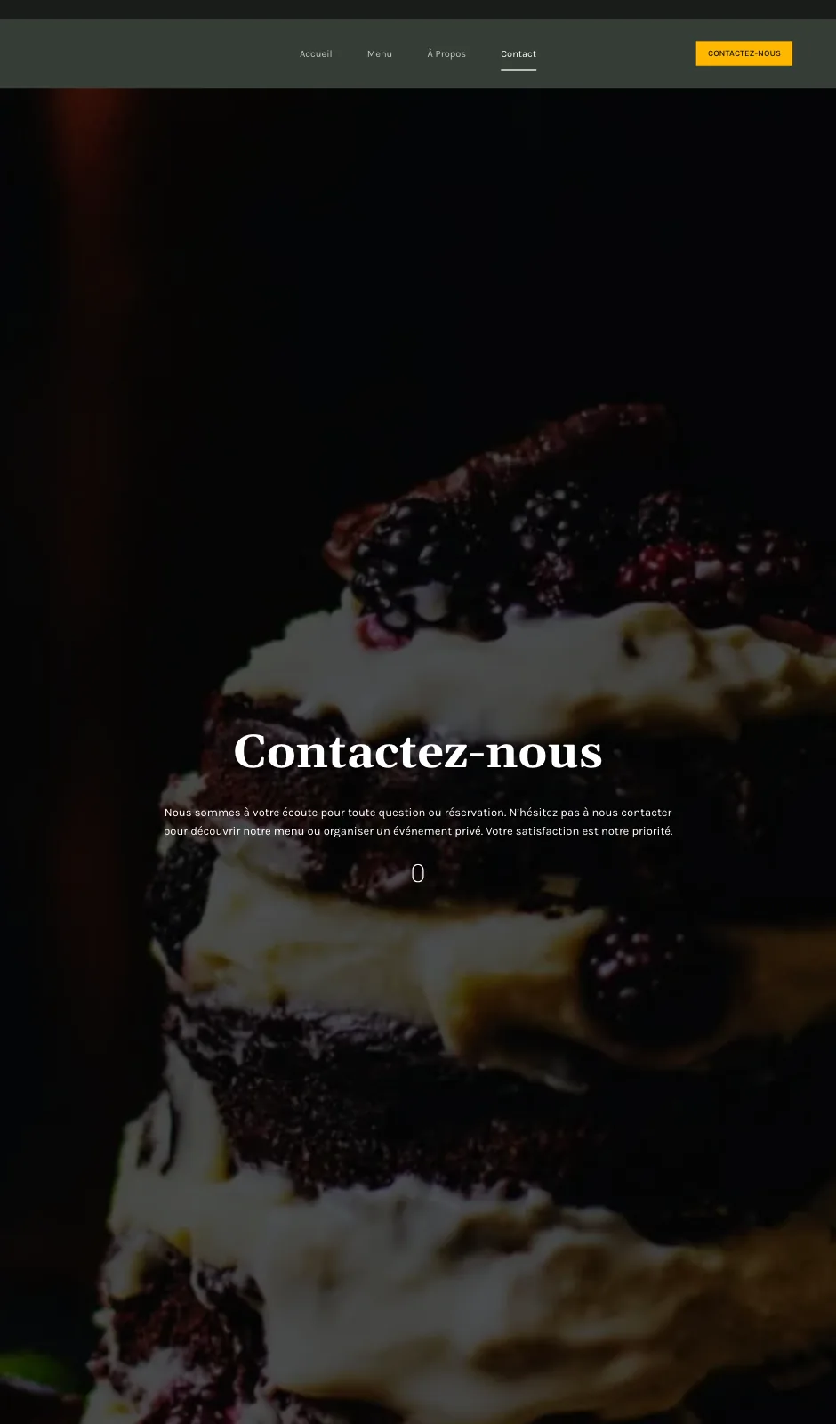 Tous les essentiels sont là ! Une page " À propos " pour raconter l'histoire de votre aventure culinaire, un blog pour partager vos recettes, vos actualités ou des anecdotes sur vos spécialités, et bien sûr, une page de contact simplifiée pour que vos clients puissent réserver une table en un clic.