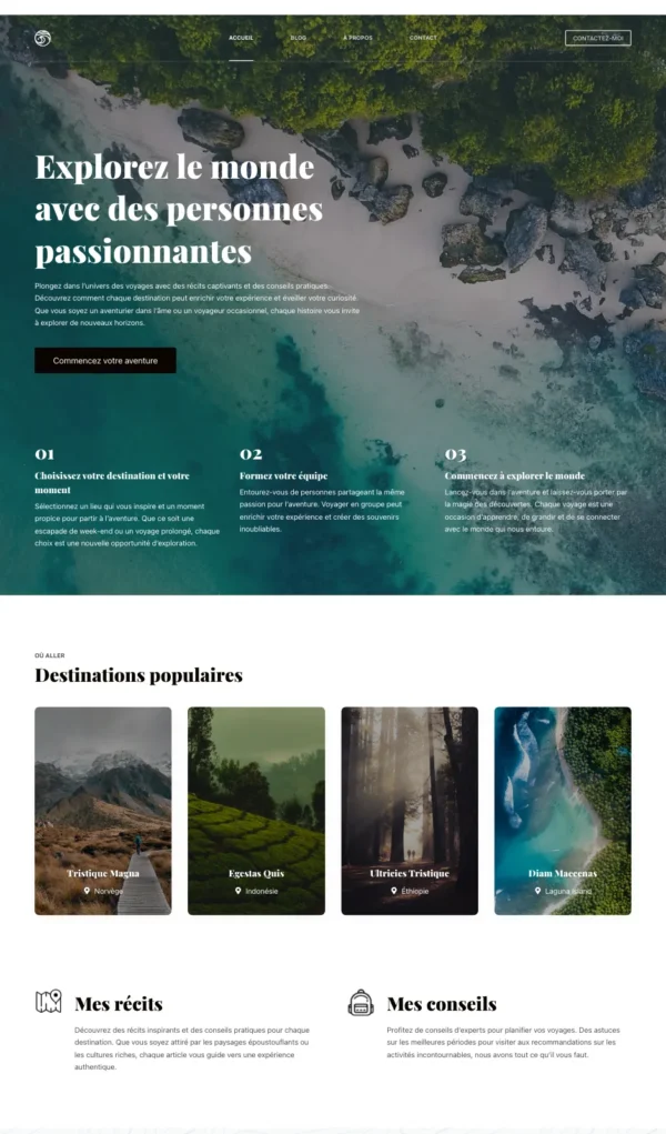 Créez des sites de qualité professionnelle, quel que soit votre niveau de compétence. Nos modèles sont conçus pour offrir un rendu impeccable.